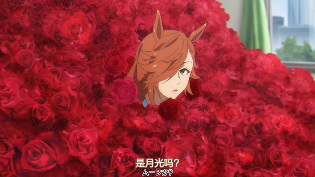 这一季虽然感觉有点拖拉,但确实还是在认真地做好每一位赛马娘的。这个场景真的像是一只马头从花里面伸出来……